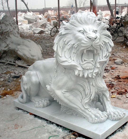 漢白玉石獅子在擺放的時候,...