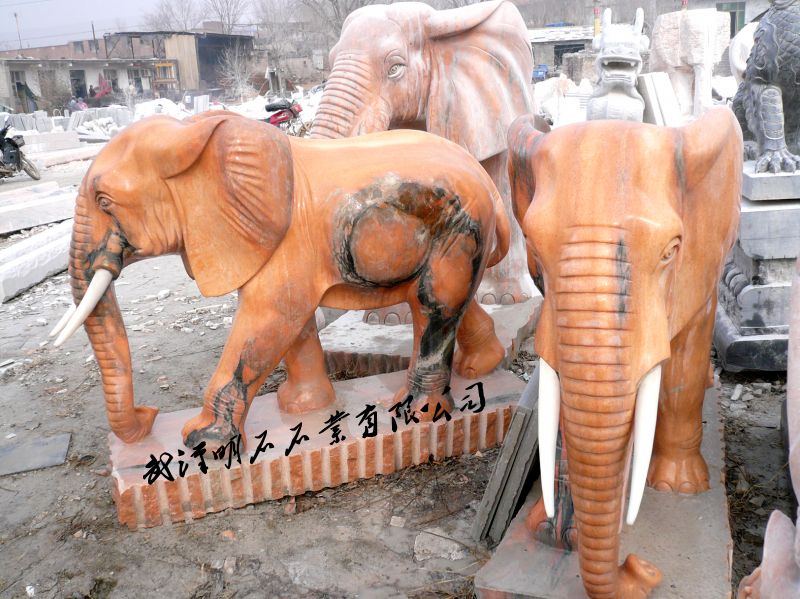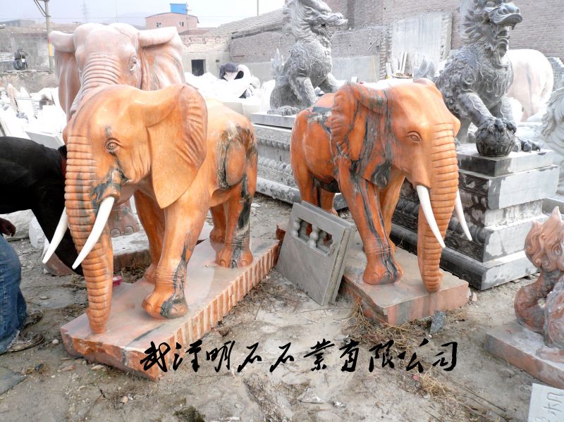 晚霞紅石雕大象